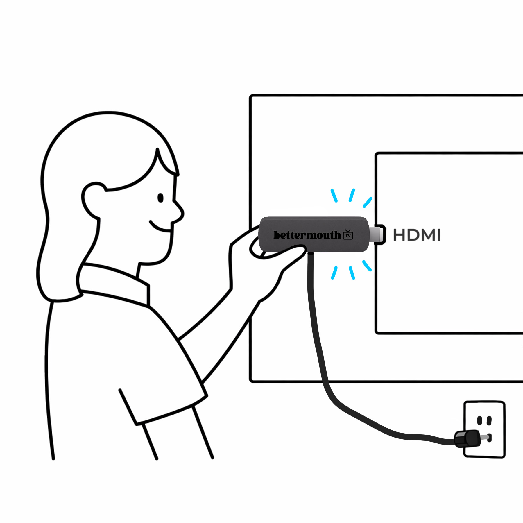 Your BetterMouth TV Stick comes pre-configured for your practice before it ships. Just plug it into your TV, connect to Wi-Fi, and it runs automatically.